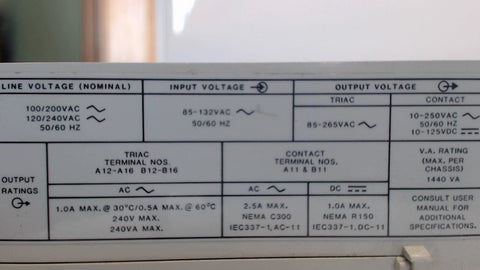 USED IN GOOD CONDITION. INPUT VOLTAGE 85 -135VAC , 50/60 HZ , OUTPUT 10- 250VAC 50/60HZ, 10-125 VDC . , TLB 3/2016