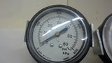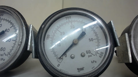 LOT OF 3 --- MARSHALLTOWN PNEUMATIC GAUGES, 0-60 PSI, 400 kPa, 1/4" PORT