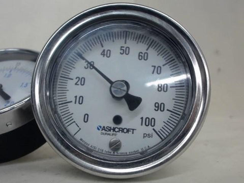 1 EACH, ASHCROFT, 0-100PSI, BACK/BOTTOM PORT, USED -----