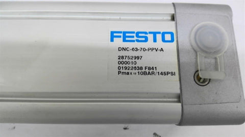 Festo DNC-63-70-PPV-A Pneumatic Cylinder Return Policy Returns accepted within 30 days. Items sold as is cannot be returned, unless description is in error. Buyer pays return freight. Shipping Policy We ship almost all items with 1 business day of cleared payment. We ship USPS and UPS. We can ship on your account. If you will be shipping freight, please be sure to provide all delivery contact information including a phone number. We will need to know if you have a fork lift or dock.