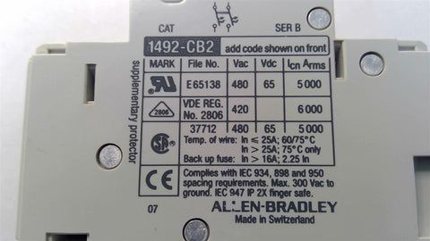 Allen Bradley 1492-CB2 H150 Circuit Breaker 15A 2 Pole