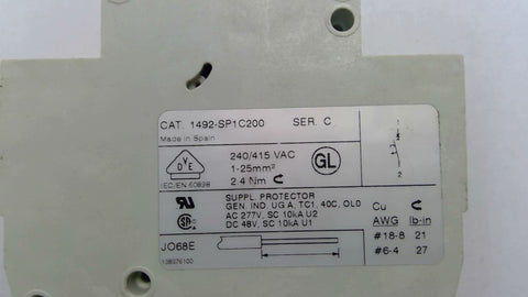 Allen Bradley 1492-SP1C200 Circuit Breaker 20A Used---Good Visual Condition-1/25---JLVCC 159060---SS284-SK-119-A-2---2.00