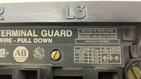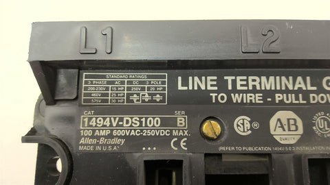 Allen Bradley 149V-DS100 100A 600VAC 250VDC Disconnect Switch Return Policy Returns accepted within 30 days. Items sold as is cannot be returned, unless description is in error. Buyer pays return freight. Shipping Policy We ship almost all items with 1 business day of cleared payment. We ship USPS and UPS. We can ship on your account. If you will be shipping freight, please be sure to provide all delivery contact information including a phone number. We will need to know if you have a fork lift or dock.