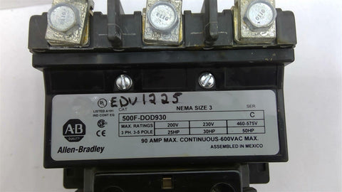 Allen Bradley 500F-DOD930 Starter Size 3 460 Volts 50 HP 115-120 Volt Coil