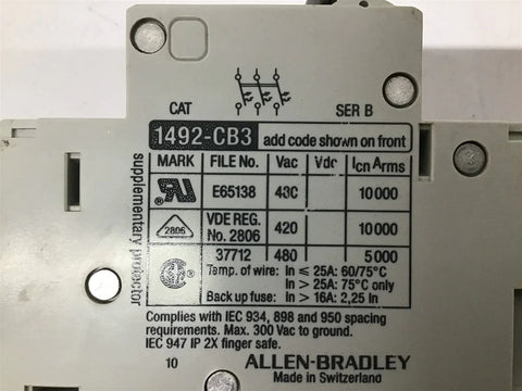 Allen-Bradley G 200 1492-CB3 Circiuit Breaker 3 P Return Policy Returns accepted within 30 days. Items sold as is cannot be returned, unless description is in error. Buyer pays return freight. Shipping Policy We ship almost all items with 1 business day of cleared payment. We ship USPS and UPS. We can ship on your account. If you will be shipping freight, please be sure to provide all delivery contact information including a phone number. We will need to know if you have a fork lift or dock.