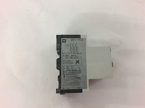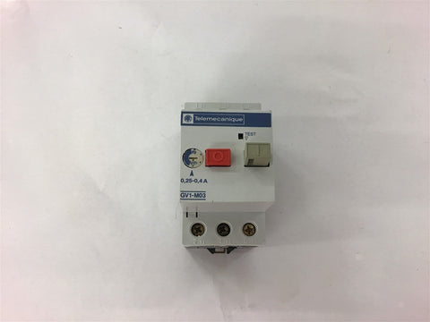 Telemecanique GV1-M03 .25-.40 Amp Circuit Breaker Return Policy Returns accepted within 30 days. Items sold as is cannot be returned, unless description is in error. Buyer pays return freight. Shipping Policy We ship almost all items with 1 business day of cleared payment. We ship USPS and UPS. We can ship on your account. If you will be shipping freight, please be sure to provide all delivery contact information including a phone number. We will need to know if you have a fork lift or dock.