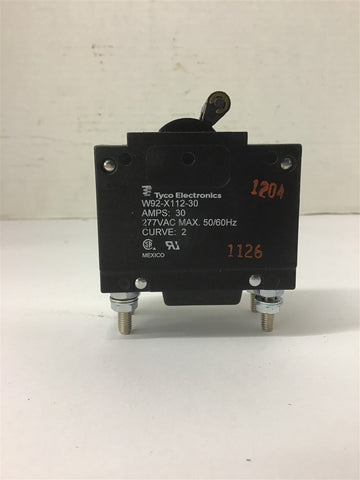 Tyco Electronics W92-X112-30 30 Amp Circuit Breaker 2 Pole 277 Volts Return Policy Returns accepted within 30 days. Items sold as is cannot be returned, unless description is in error. Buyer pays return freight. Shipping Policy We ship almost all items with 1 business day of cleared payment. We ship USPS and UPS. We can ship on your account. If you will be shipping freight, please be sure to provide all delivery contact information including a phone number. We will need to know if you have a fork lift or dock.