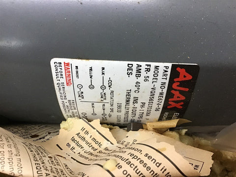 Ajax ME674-56 3/4 HP AC Motor 115 Volts 1725 Rpm 4P 56 Frame Single Phase Return Policy Returns accepted within 30 days. Items sold as is cannot be returned, unless description is in error. Buyer pays return freight. Shipping Policy We ship almost all items with 1 business day of cleared payment. We ship USPS and UPS. We can ship on your account. If you will be shipping freight, please be sure to provide all delivery contact information including a phone number. We will need to know if you have a fork lift or dock.