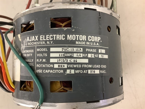 Ajax PSC-13-1LN 1/3 HP AC motor 115 Volts 1075 Rpm Return Policy Returns accepted within 30 days. Items sold as is cannot be returned, unless description is in error. Buyer pays return freight. Shipping Policy We ship almost all items with 1 business day of cleared payment. We ship USPS and UPS. We can ship on your account. If you will be shipping freight, please be sure to provide all delivery contact information including a phone number. We will need to know if you have a fork lift or dock.