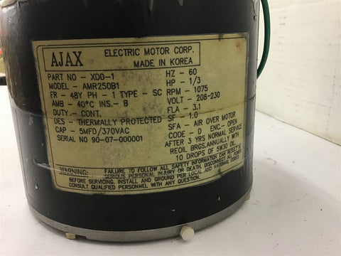 Ajax XDD-1 AMR250B1 1/3 HP AC Motor 208-230 volts 1075 Rpm Payment Policy Payment through PayPal or Contact Brooks Motor & Electric for Credit Card approval. Return Policy Returns accepted within 30 days. Items sold as is cannot be returned, unless description is in error. Buyer pays return freight. Shipping Policy We ship almost all items within 1 business day of cleared payment in the United States. We ship USPS, UPS, and Ebay Global Shipping Program. We can ship on your account only in the Unites States. If you will be shipping freight, please be sure to provide all delivery contact information including a phone number. We will need to know if you have a fork lift or dock. International shipments do not apply to this. Shipments will be handled through Ebay Global Shipping warehouse.