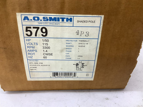 AO Smith 579 AC Motor 1/50HP 115V 3300RPM 3.3FR 1PH 60HZ Open ENCL