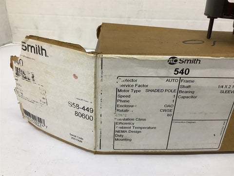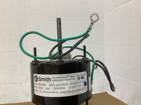 AO Smith JA2C341N Motor Stock #540 115V 60HZ .60AMP 1550RPM 1/7HP 1PH Return Policy Returns accepted within 30 days. Items sold as is cannot be returned, unless description is in error. Buyer pays return freight. Shipping Policy We ship almost all items with 1 business day of cleared payment. We ship USPS and UPS. We can ship on your account. If you will be shipping freight, please be sure to provide all delivery contact information including a phone number. We will need to know if you have a fork lift or dock.