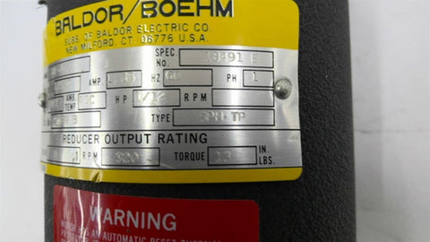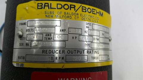 Baldor 1/2 HP AC Gear Motor Single Phase 115 VAC 11:1 Ratio 320 RPM