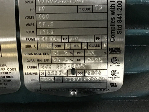 Baldor 10 Hp AC Motor 460 volts 1800 Rpm 4P 215 TC Frame 3 Phase TEFC 60 HZ Return Policy Returns accepted within 30 days. Items sold as is cannot be returned, unless description is in error. Buyer pays return freight. Shipping Policy We ship almost all items with 1 business day of cleared payment. We ship USPS and UPS. We can ship on your account. If you will be shipping freight, please be sure to provide all delivery contact information including a phone number. We will need to know if you have a fork lift or dock.