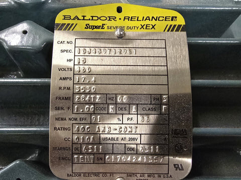 Baldor 10J459Y12961 15HP 460V 3600RPM 2P 284TZ 3PH TENV AC Motor[[Description]]BV 158427---SS-W-5-7-2-A---420.00