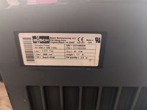 Baldor SuperE Motor 06H411X204G1 W/Busch RA 0063 F506 11XG Vacuum Pump Return Policy Returns accepted within 30 days. Items sold as is cannot be returned, unless description is in error. Buyer pays return freight. Shipping Policy We ship almost all items with 1 business day of cleared payment. We ship USPS and UPS. We can ship on your account. If you will be shipping freight, please be sure to provide all delivery contact information including a phone number. We will need to know if you have a fork lift or dock.