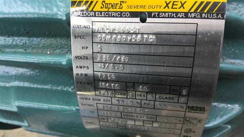 Baldor VECP3665T 5 HP AC Motor 1800 RPM 4 P 3 PH 184TC 208-230/460 V TEFC 60 HZ
