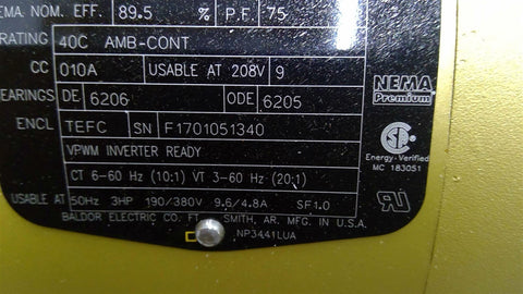 Baldor VEM3561T 3HP 230/460V 1760/1800RPM 4P Return Policy Returns accepted within 30 days. Items sold as is cannot be returned, unless description is in error. Buyer pays return freight. Shipping Policy We ship almost all items with 1 business day of cleared payment. We ship USPS and UPS. We can ship on your account. If you will be shipping freight, please be sure to provide all delivery contact information including a phone number. We will need to know if you have a fork lift or dock.