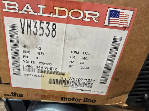 Baldor VM3538 1/2HP 230/460 1800RPM 56C 3PH 4P TEFC [[Description]]BV 158768---SS--W-1-2-4-B---30.00