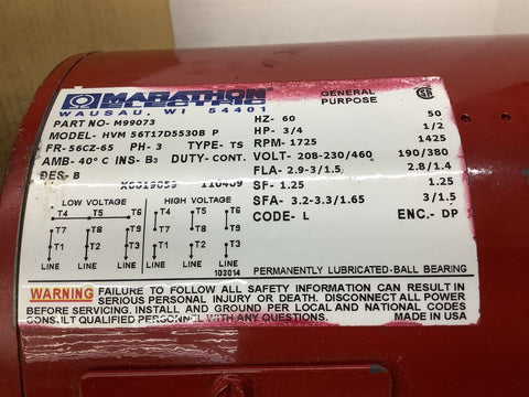Bell And Gosset 169206 Marathon HUM56T17D5530BP Return Policy Returns accepted within 30 days. Items sold as is cannot be returned, unless description is in error. Buyer pays return freight. Shipping Policy We ship almost all items with 1 business day of cleared payment. We ship USPS and UPS. We can ship on your account. If you will be shipping freight, please be sure to provide all delivery contact information including a phone number. We will need to know if you have a fork lift or dock.