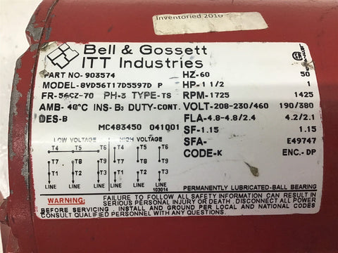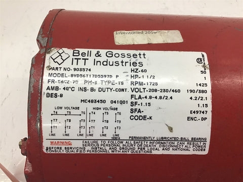 Bell & Gossett 903574 Motor Return Policy Returns accepted within 30 days. Items sold as is cannot be returned, unless description is in error. Buyer pays return freight. Shipping Policy We ship almost all items with 1 business day of cleared payment. We ship USPS and UPS. We can ship on your account. If you will be shipping freight, please be sure to provide all delivery contact information including a phone number. We will need to know if you have a fork lift or dock.