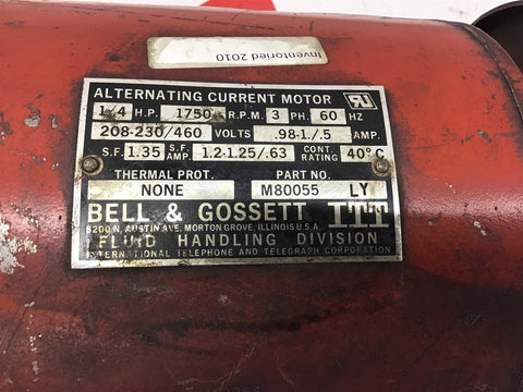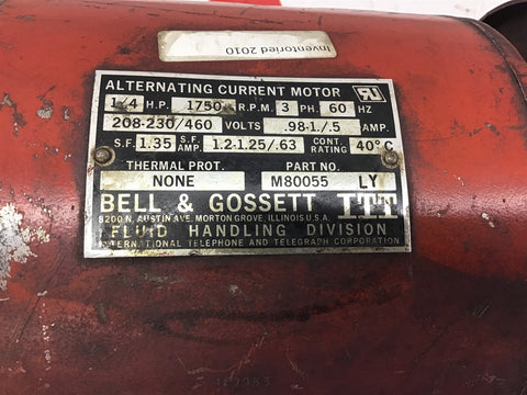 Bell & Gossett M80055 AC Motor Return Policy Returns accepted within 30 days. Items sold as is cannot be returned, unless description is in error. Buyer pays return freight. Shipping Policy We ship almost all items with 1 business day of cleared payment. We ship USPS and UPS. We can ship on your account. If you will be shipping freight, please be sure to provide all delivery contact information including a phone number. We will need to know if you have a fork lift or dock.