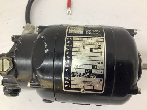 Bodine Electric Company NSH-12R DC Gearmotor 1/50 HP 115V 1725 RPM 0.33 Amp Return Policy Returns accepted within 30 days. Items sold as is cannot be returned, unless description is in error. Buyer pays return freight. Shipping Policy We ship almost all items with 1 business day of cleared payment. We ship USPS and UPS. We can ship on your account. If you will be shipping freight, please be sure to provide all delivery contact information including a phone number. We will need to know if you have a fork lift or dock.