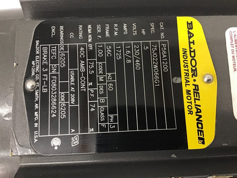 Boston P56A1200 .5 HP AC Brake Motor 230/460 Volts 1800 rpm Return Policy Returns accepted within 30 days. Items sold as is cannot be returned, unless description is in error. Buyer pays return freight. Shipping Policy We ship almost all items with 1 business day of cleared payment. We ship USPS and UPS. We can ship on your account. If you will be shipping freight, please be sure to provide all delivery contact information including a phone number. We will need to know if you have a fork lift or dock.