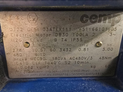 Cemp 0722CESI03ATEX111 3kW AC Motor 3600RPM 2P 3PH 278/480 60Hz [[Description]]BV 166236---SS284-W-5-1-4-B---151.00