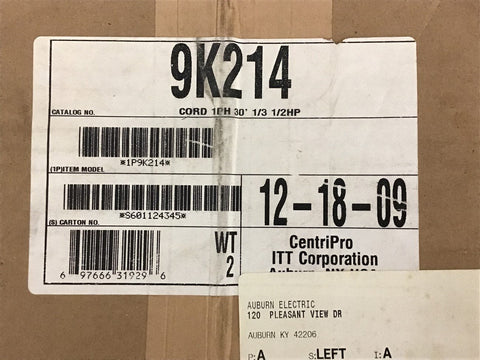 Centripro 9K214 Cord Single Phase 30' 1/3 1/2 HP