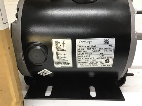 Century --- C045A --- 1/4HP --- 115/230 V --- 1100 RPM --- FR 48Z --- ENCL Enclosed --- New Surplus--Opened Factory Box----7/21/WW