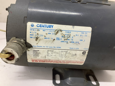 Century C198 Ac Motor 1/4 Hp 115/230 V 1800 Rpm 4P Fr M48 1 Ph 60 Hz TE