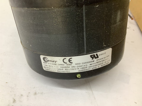 Century CA3G080N Motor Stock # 305 15V 60HZ 1.1AMP 1050RPM 1PH 1/40HP Return Policy Returns accepted within 30 days. Items sold as is cannot be returned, unless description is in error. Buyer pays return freight. Shipping Policy We ship almost all items with 1 business day of cleared payment. We ship USPS and UPS. We can ship on your account. If you will be shipping freight, please be sure to provide all delivery contact information including a phone number. We will need to know if you have a fork lift or dock.