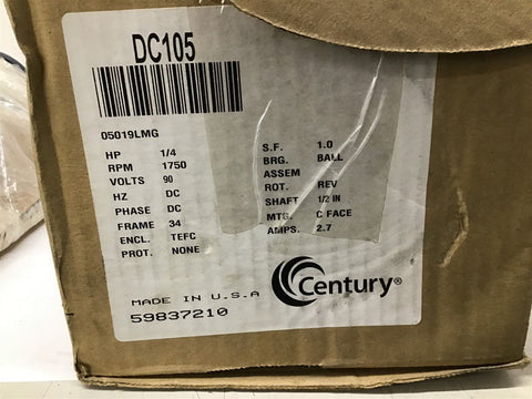 Century DC105 1/4HP 90V 1750 RPM 34-FR TEFC DC Motor