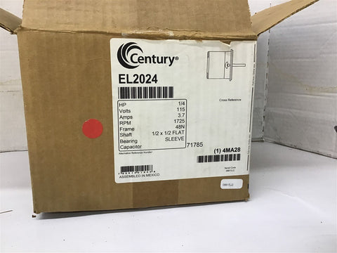 Century EL2024 1/4HP 115V 1725 RPM FR 48N AC Motor Return Policy Returns accepted within 30 days. Items sold as is cannot be returned, unless description is in error. Buyer pays return freight. Shipping Policy We ship almost all items with 1 business day of cleared payment. We ship USPS and UPS. We can ship on your account. If you will be shipping freight, please be sure to provide all delivery contact information including a phone number. We will need to know if you have a fork lift or dock.