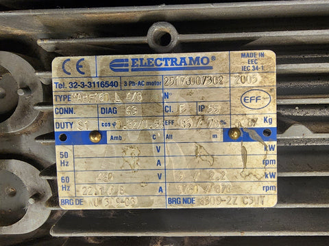 Electramo MAHF160 L 4/8 9kW 1800 4P 480V 3PH AC Motor 22.1 Amps