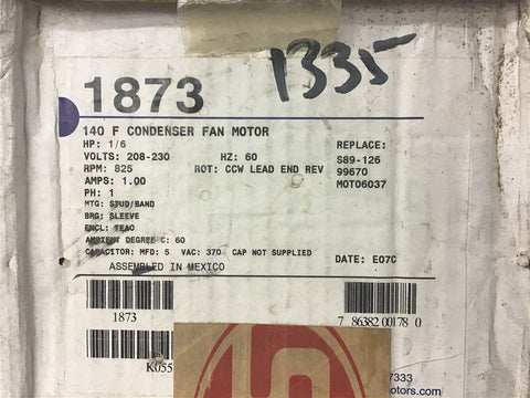 Emerson 1873 1/6 HP Fan Motor 208-230 volt 825 Rpm Single Phase Return Policy Returns accepted within 30 days. Items sold as is cannot be returned, unless description is in error. Buyer pays return freight. Shipping Policy We ship almost all items with 1 business day of cleared payment. We ship USPS and UPS. We can ship on your account. If you will be shipping freight, please be sure to provide all delivery contact information including a phone number. We will need to know if you have a fork lift or dock.