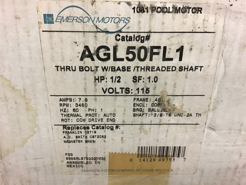Emerson AGL50FL1 7.5 amps Pool Motor 3450 Rpm single Phase 48Y Frame Return Policy Returns accepted within 30 days. Items sold as is cannot be returned, unless description is in error. Buyer pays return freight. Shipping Policy We ship almost all items with 1 business day of cleared payment. We ship USPS and UPS. We can ship on your account. If you will be shipping freight, please be sure to provide all delivery contact information including a phone number. We will need to know if you have a fork lift or dock.