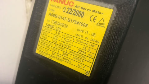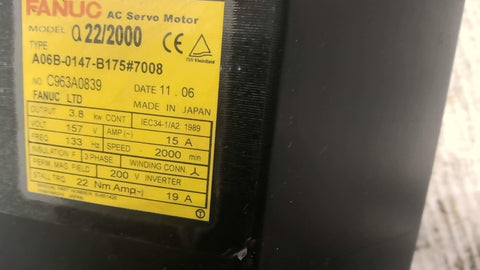 Fanuc A06B-0147-B175 #7008 3.8 KW AC Servo Motor 2000 RPM 3 Phase 157 V 133 HZ