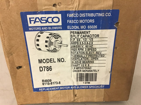 Fasci D786 3/4 1/2 1/3 HP AC Motor 208-230 Volt 1625 Rpm 3 Speed Return Policy Returns accepted within 30 days. Items sold as is cannot be returned, unless description is in error. Buyer pays return freight. Shipping Policy We ship almost all items with 1 business day of cleared payment. We ship USPS and UPS. We can ship on your account. If you will be shipping freight, please be sure to provide all delivery contact information including a phone number. We will need to know if you have a fork lift or dock.