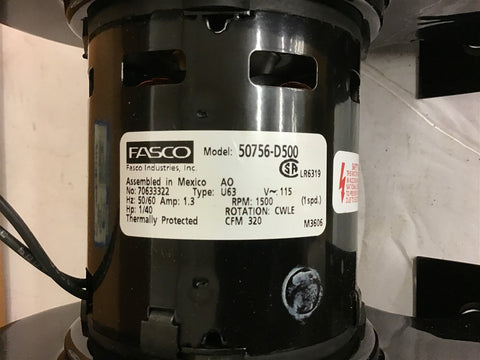 Fasco 50756-D500 Blower Inducer Motor 320 CFM 115 Volt 1500 Rpm 1.3 Amp Return Policy Returns accepted within 30 days. Items sold as is cannot be returned, unless description is in error. Buyer pays return freight. Shipping Policy We ship almost all items with 1 business day of cleared payment. We ship USPS and UPS. We can ship on your account. If you will be shipping freight, please be sure to provide all delivery contact information including a phone number. We will need to know if you have a fork lift or dock.