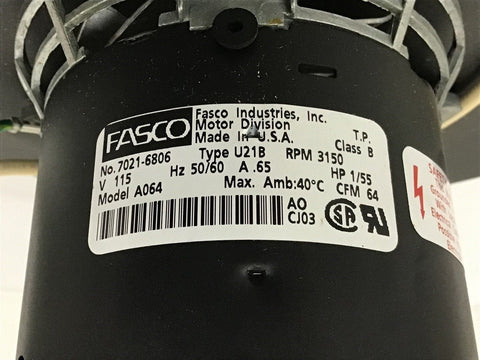 Fasco A064 Draft Inducer Blower Motor 64 CFM 115 volts 3150 Rpm 1 Speed Return Policy Returns accepted within 30 days. Items sold as is cannot be returned, unless description is in error. Buyer pays return freight. Shipping Policy We ship almost all items with 1 business day of cleared payment. We ship USPS and UPS. We can ship on your account. If you will be shipping freight, please be sure to provide all delivery contact information including a phone number. We will need to know if you have a fork lift or dock.