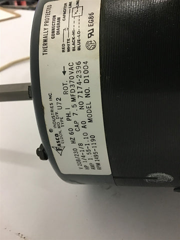 Fasco D1004 1/4-1/8 HP AC Motor 208/230 volts 1495-1190 Rpm Return Policy Returns accepted within 30 days. Items sold as is cannot be returned, unless description is in error. Buyer pays return freight. Shipping Policy We ship almost all items with 1 business day of cleared payment. We ship USPS and UPS. We can ship on your account. If you will be shipping freight, please be sure to provide all delivery contact information including a phone number. We will need to know if you have a fork lift or dock.