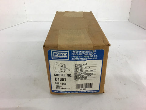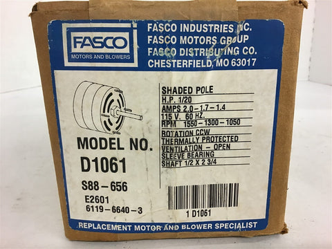 Fasco D1061 1/20 Hp Shaded Pole Motor 115 Volts 1150-1300-1050 Rpm Return Policy Returns accepted within 30 days. Items sold as is cannot be returned, unless description is in error. Buyer pays return freight. Shipping Policy We ship almost all items with 1 business day of cleared payment. We ship USPS and UPS. We can ship on your account. If you will be shipping freight, please be sure to provide all delivery contact information including a phone number. We will need to know if you have a fork lift or dock.