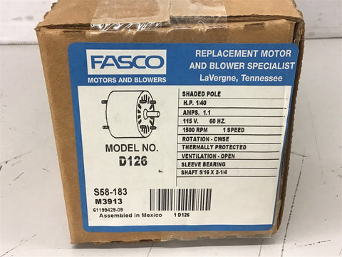 Fasco D126 1/40 HP Blower Motor 1.1 amps 115 volts 1500 Rpm 1 speed