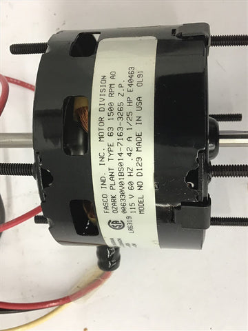 Fasco D129 1/25-1/200 HP 115 Volts AC Motor 1500 Rpm 2 Speed Return Policy Returns accepted within 30 days. Items sold as is cannot be returned, unless description is in error. Buyer pays return freight. Shipping Policy We ship almost all items with 1 business day of cleared payment. We ship USPS and UPS. We can ship on your account. If you will be shipping freight, please be sure to provide all delivery contact information including a phone number. We will need to know if you have a fork lift or dock.