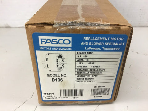 Fasco D136 1/30 HP blower Motor 115 volts 1500 Rpm 1 speed