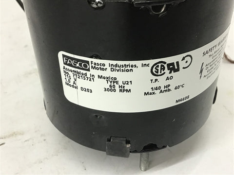 FAsco D203 1/40 HP AC Motor 115 volts 3000 Rpm 1 Speed