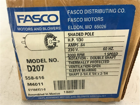 Fasco D207 1/30 HP 230 Volts Motor 3000 Rpm 1 Speed