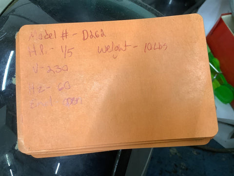 Fasco D262 Motor 1/5HP 230V 60HZ Open Encl Return Policy Returns accepted within 30 days. Items sold as is cannot be returned, unless description is in error. Buyer pays return freight. Shipping Policy We ship almost all items with 1 business day of cleared payment. We ship USPS and UPS. We can ship on your account. If you will be shipping freight, please be sure to provide all delivery contact information including a phone number. We will need to know if you have a fork lift or dock.